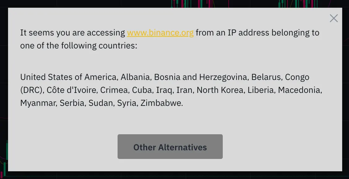Yet be forewarned, IP addresses from the following countries are barred from using the bridge: Albania, Bosnia and Herzegovina, Belarus, Congo (DRC), Côte d’Ivoire, Crimea, Cuba, Iraq, Iran, North Korea, Liberia, Macedonia, Myanmar, Serbia, Sudan, Syria, the United States of America, and Zimbabwe.