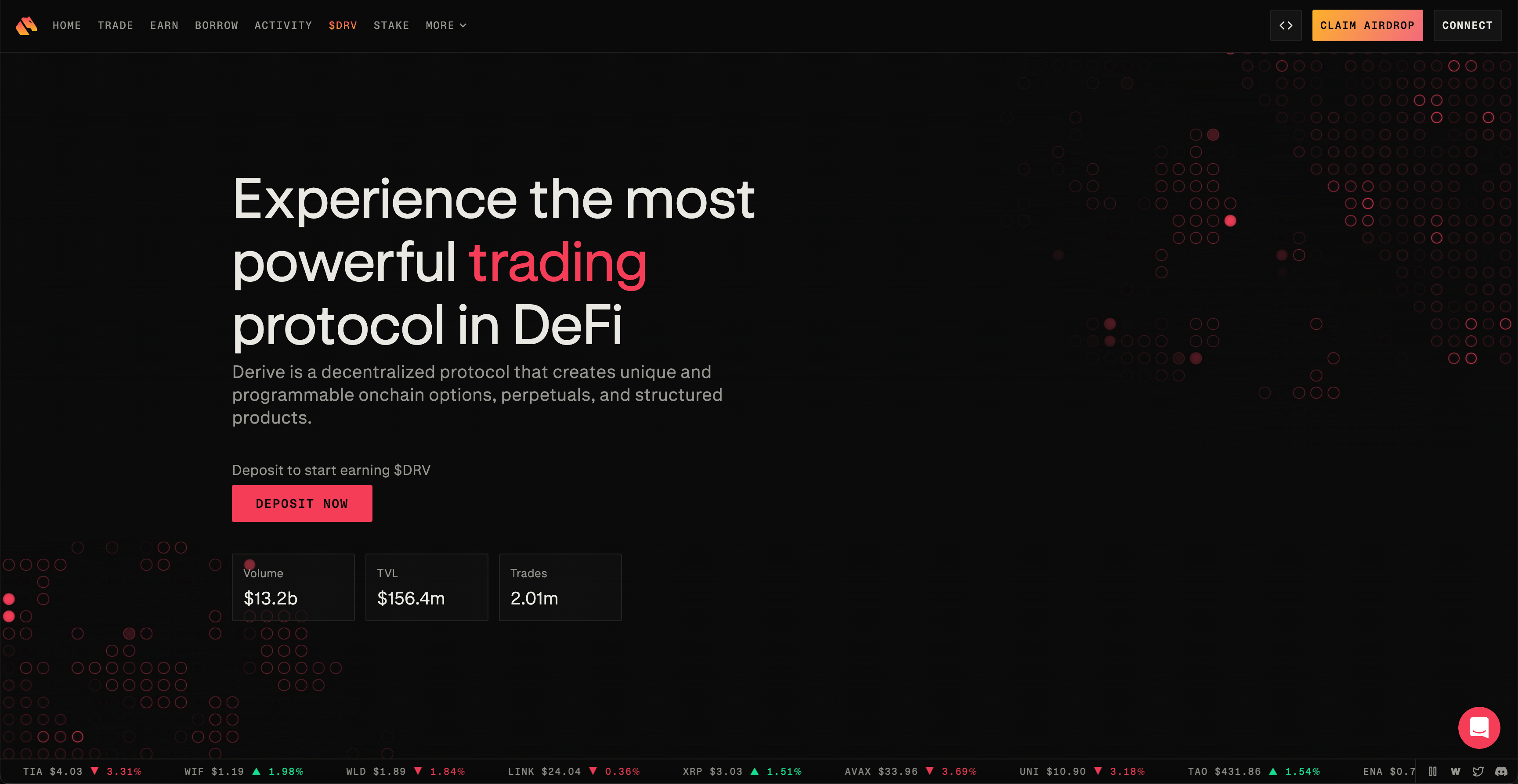 Derive is a decentralized protocol that creates unique and programmable onchain options, perpetuals, and structured products.