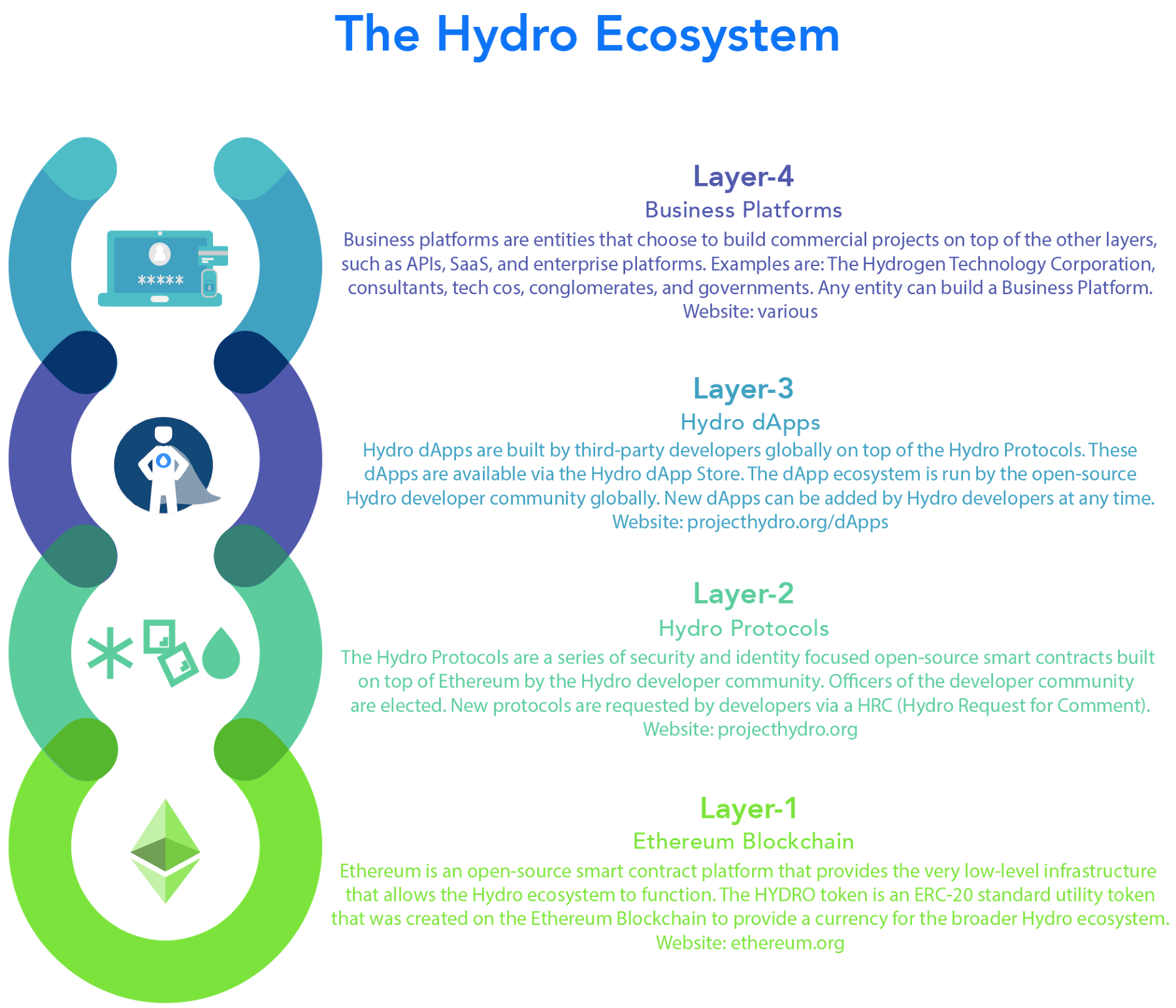 Hydro was initially created by a Fintech company called The Hydrogen Technology Corporation, located in NYC, which has a significant number of enterprise and MNE (multinational enterprise) partnerships. It was following the Equifax hack in 2017 that they realized the need for a decentralized blockchain SaaS solution within the Fintech industry. This breach emphasized how privacy and security is of utmost importance and sowed the seed for the company to build an entire decentralized economy for identity-driven applications. The team quickly began development on the project, releasing ‘Raindrop’ (our authentication protocol), and soon after ‘Snowflake,’ our digital identity (DID) management protocol. Along with that, ERC-1484 EIP (Ethereum Improvement Proposal) was shared with the Ethereum community and became a new digital identity standard! All of the things that are built within our ecosystem are tied back to this extremely powerful non-fungible, non-tradeable, identity token.