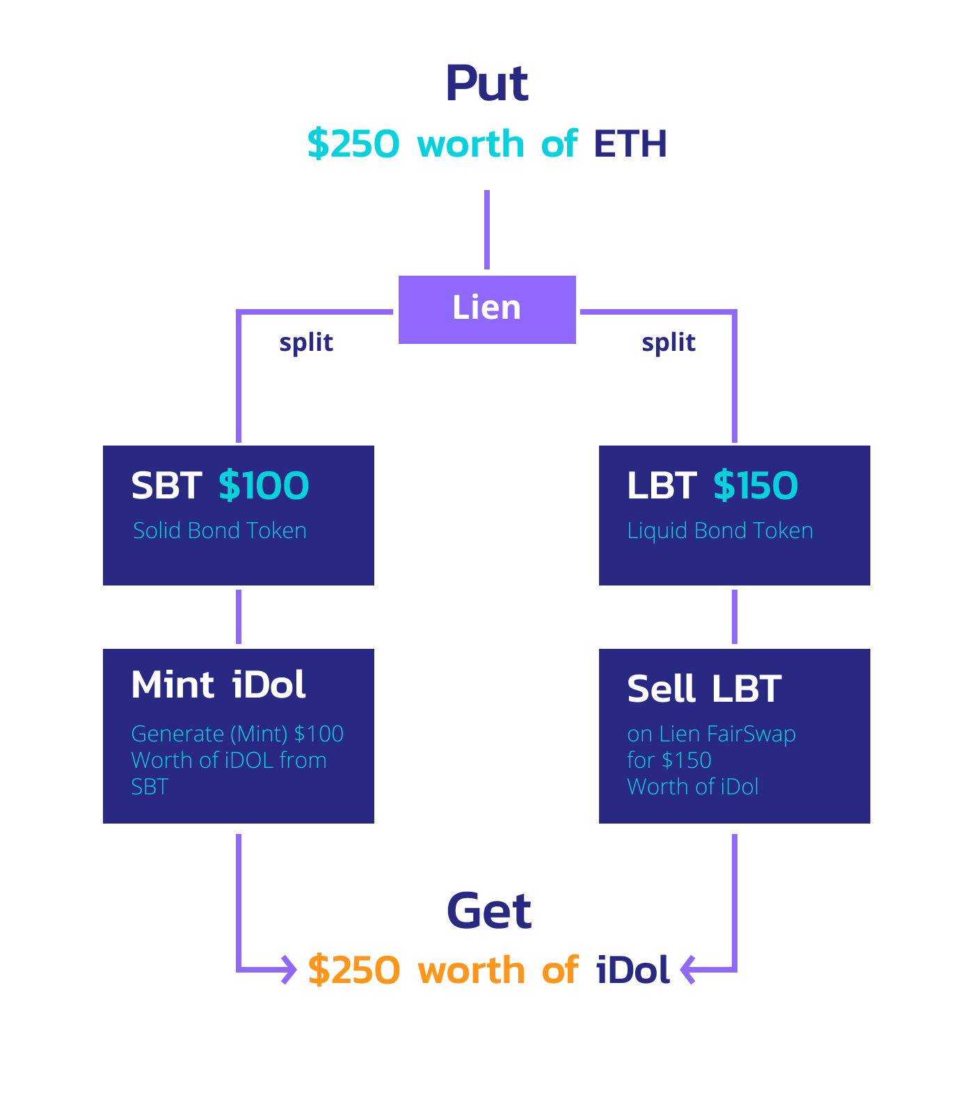 Lien is a Protocol that can mint a crypto-backed stablecoin without over-collateralization and governance. Instead of requiring users to pledge excess collateral to produce stablecoins, the Lien Protocol enables users to mint two types of derivative tokens, which are called SBT and LBT, from ETH. Both these tokens have a strike price and a maturity date, and they allow holders to receive certain amounts of ETH according to the ETH/USD price at the maturity date.