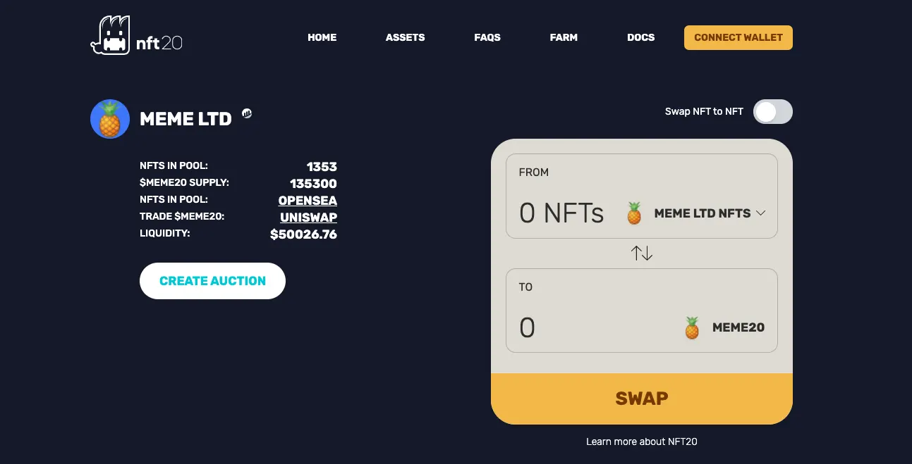 Right now our main focus is on NFT20. NFT20 is a protocol where you can swap and trade NFTs via a few different mechanisms: