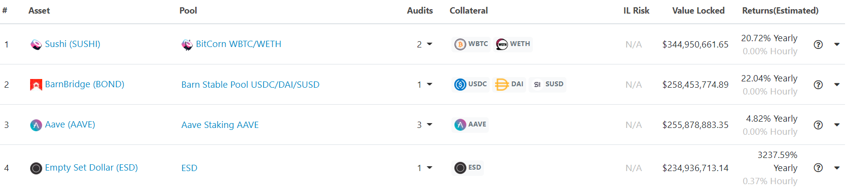 - According to CoinGecko, two of the largest yield farms in DeFi right now are stablecoin-centric: BarnBridge’s Stable Pool and Empty Set Dollar’s bonded ESD …