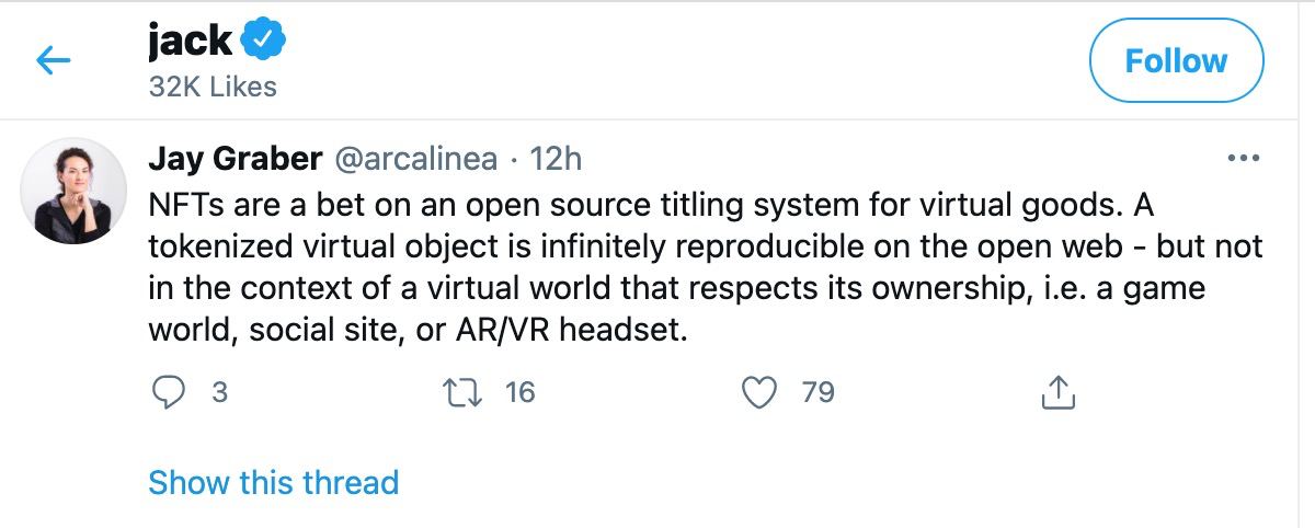 • Jack Dorsey groks NFTs! Welcome to Ethereum, Mr. Dorsey …